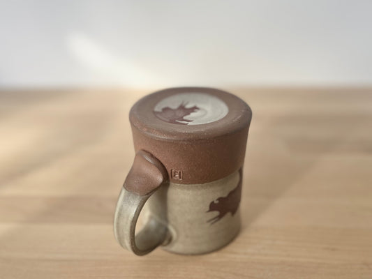 Mug with slip, gold decals and image transfer