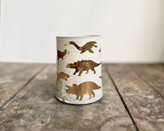 As I worked on these new pieces, exploring new territory and digging back through my past creative successes and failures, it felt a little like archeology, and it seemed only right to also include the dinosaur imagery I currently work with. Many of the other images come from an image bank I've created over the years of pictures I take of textures I find interesting. Many include snippets of deteriorated text that remind me of those Chinese message boards.