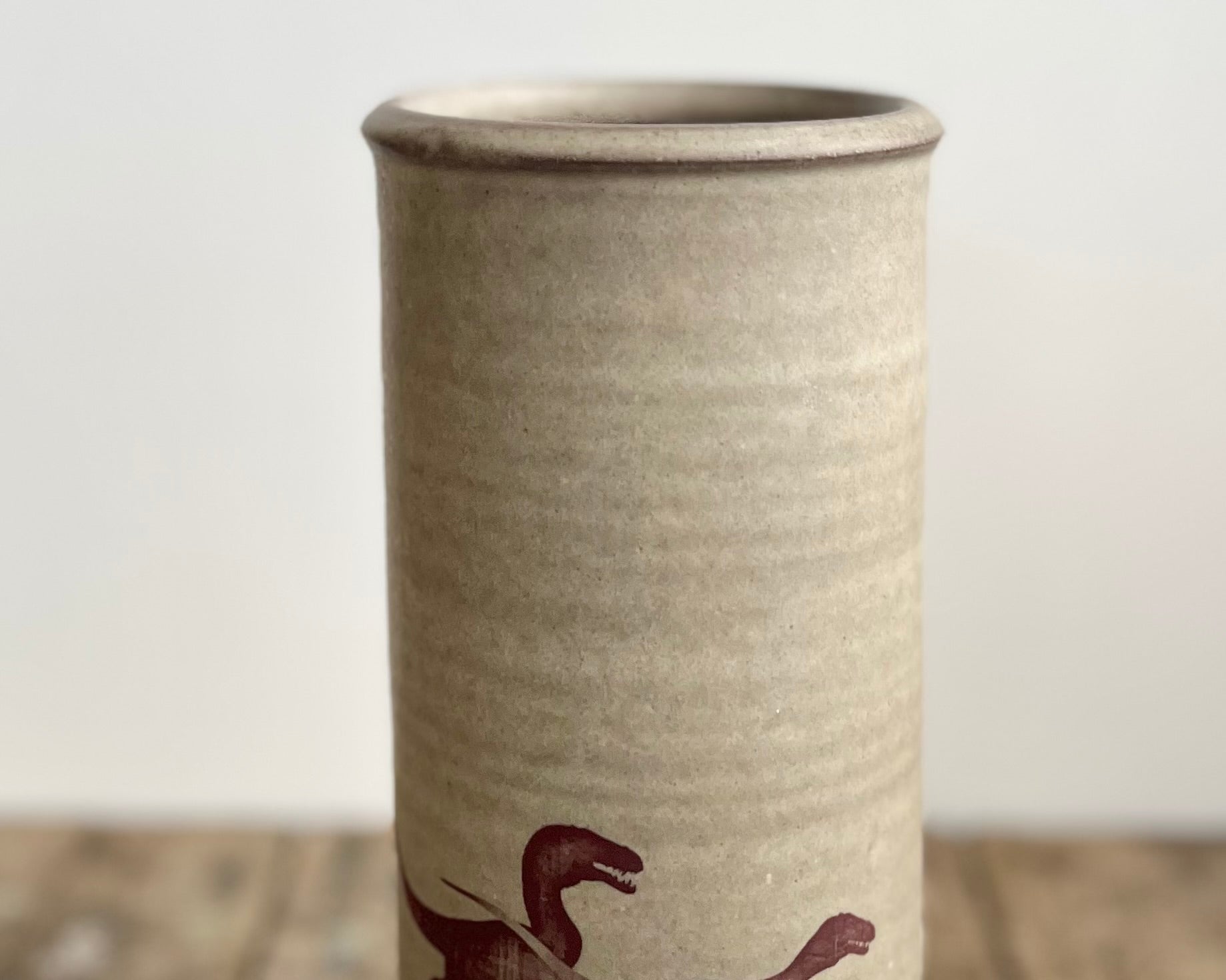 Cylindrical Vase with velociraptor pack - warm grey matte