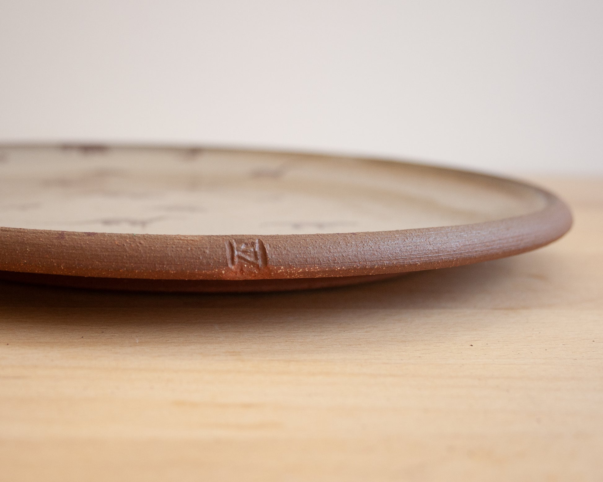 This plate is approximately 1.25"x10.5" and was fired to over 2100F. It is food, microwave and dishwasher safe.